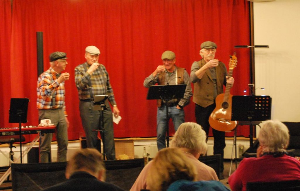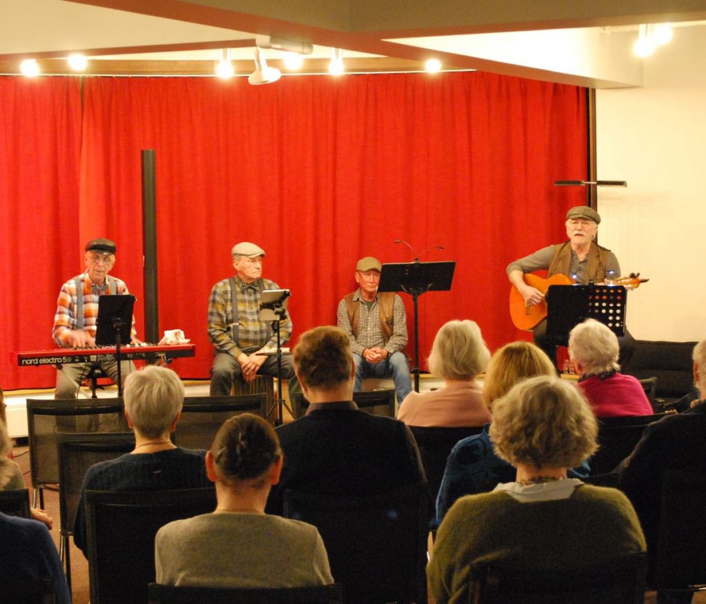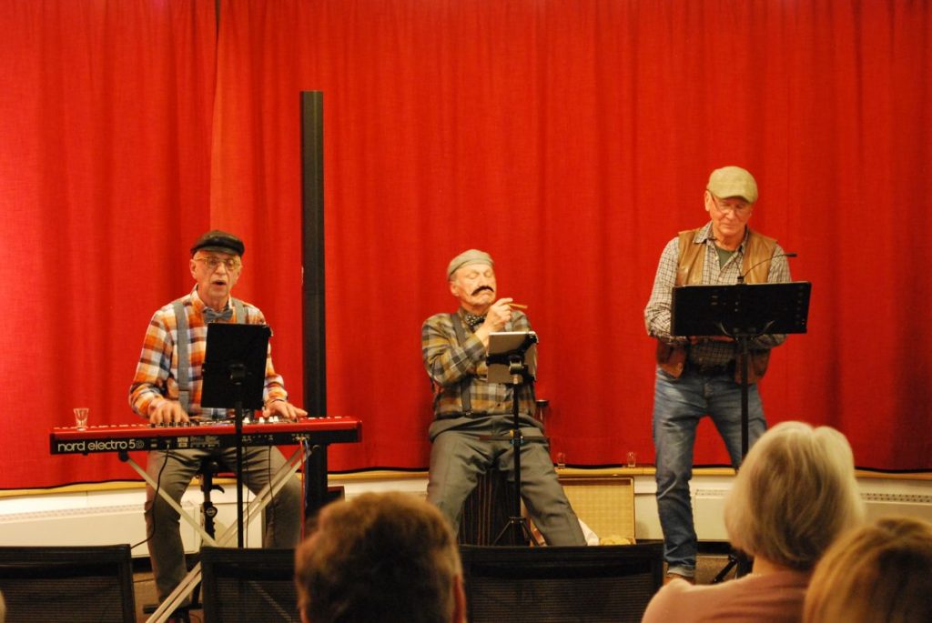 Die vier auf der Bühne hatten sichtlich Spaß und zwischendurch wurde sich schon mal ein „Kurzer“ genehmigt. Mit Gitarrist Andreas Hein-Köcher, Bernd Egger an Piano und Akkordeon, Jürgen Puls und Wilfried Stüven mit schauspielerischen Einlagen war es ein abwechslungsreicher und witziger Abend.