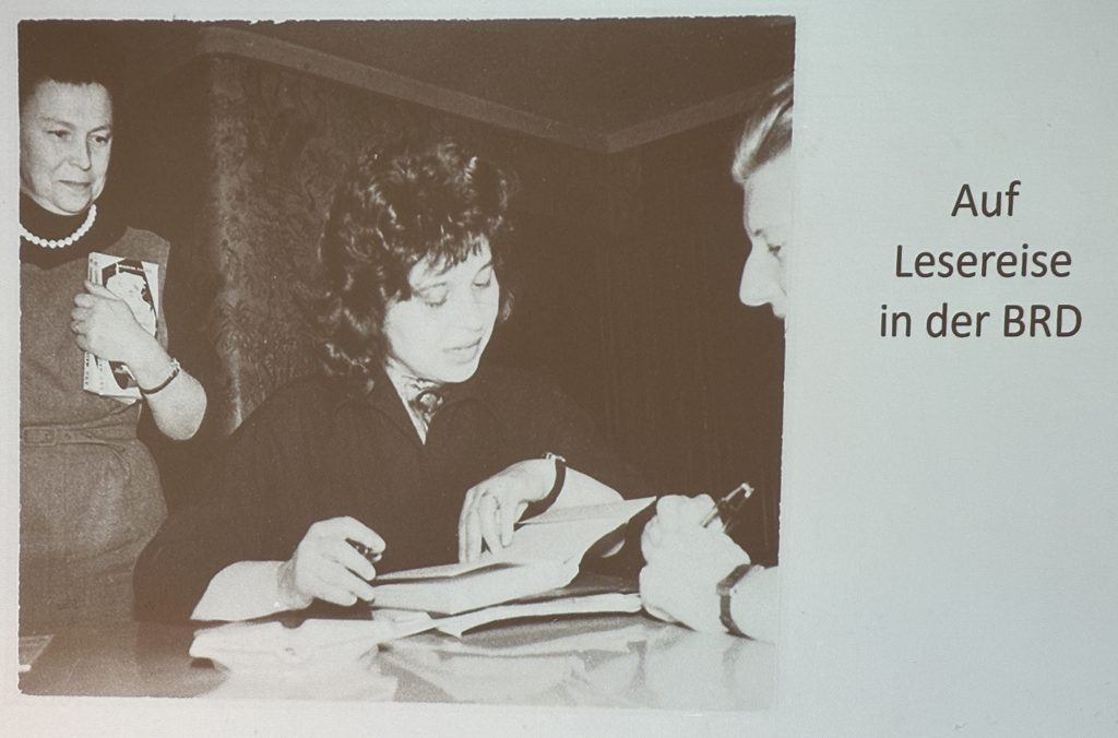 „Diese ganze Reise ist insgesamt eine ziemliche Wunderreise“, die „merkwürdigste aller Reisen“, zitiert Volker Weidemann, der Autor des Buches, die Lyrikerin. Vor allem von diesem Jahr 1956 handelt das wunderbare Buch mit dem gleichnamigen Titel des kurzen Gedichtes (s.o.), aus dem Martina Kahsnitz und Ingeborg Petersilge, die kurzfristig (!) für die erkrankte Doris Fröleke eingesprungen ist, vorlasen. Den Lesevortrag lockerten sie mit Fotos auf, sodass das Zuhören auch nach mehr als einer Stunde noch leichtfiel.
